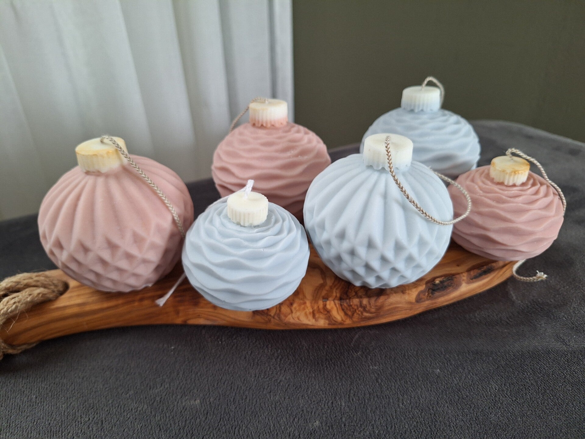 Zachte pastelkleuren kerstballen set van 3. Mix is mogelijk. Is gemaakt van koolzaad wax.