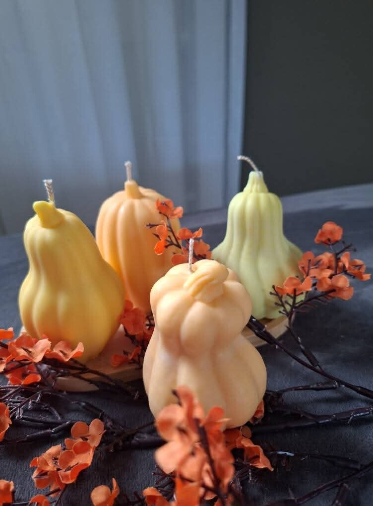 Super leuke pompoenen familie kaars. Gemaakt van soja wax. Hoogte 8/9cm