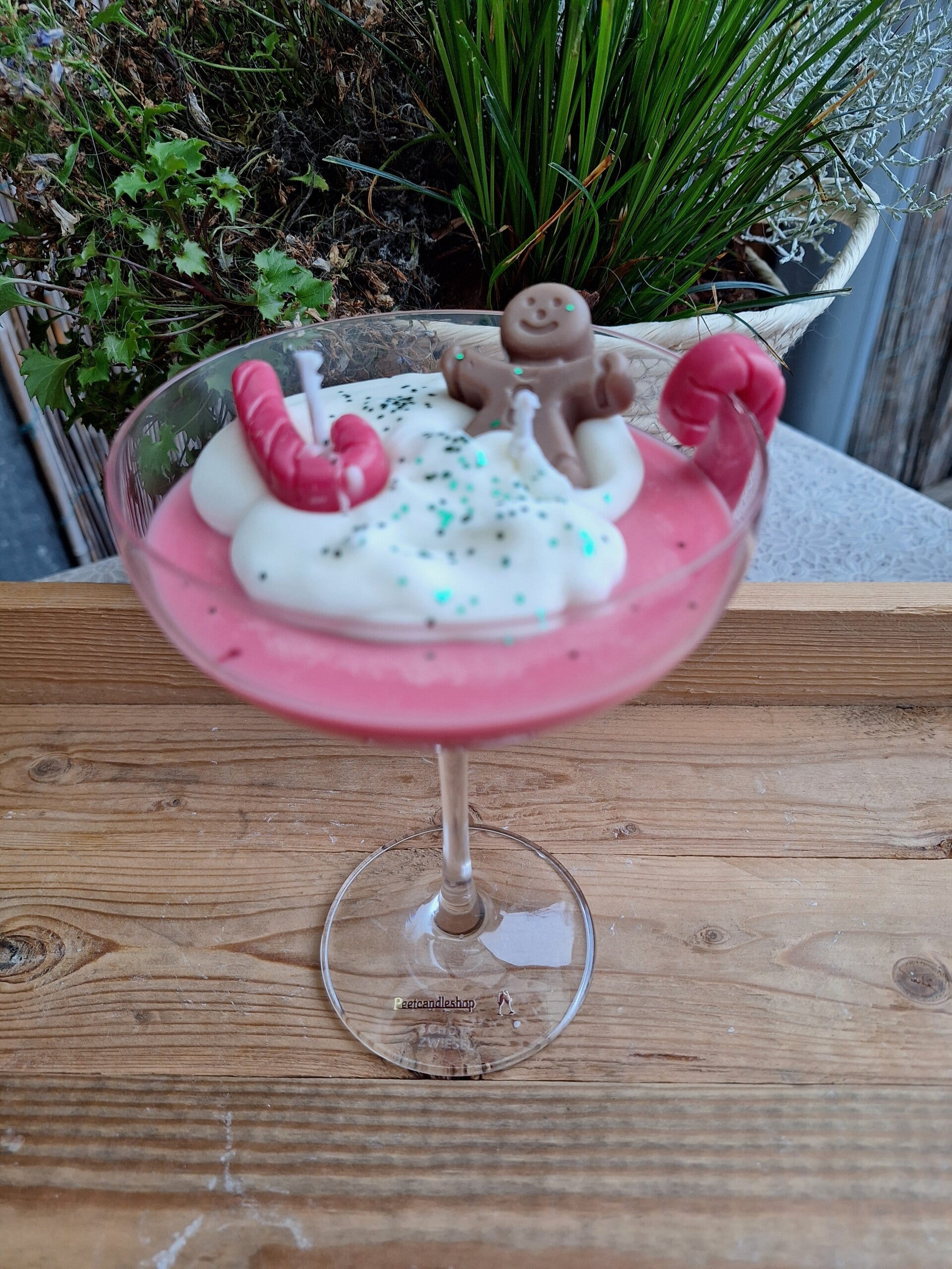 Prachtige Candy Canes kerst kaars in een champangeglas. Ruikt heerlijk naar kerstgeur. Zit 180 gram aan soja wax in.