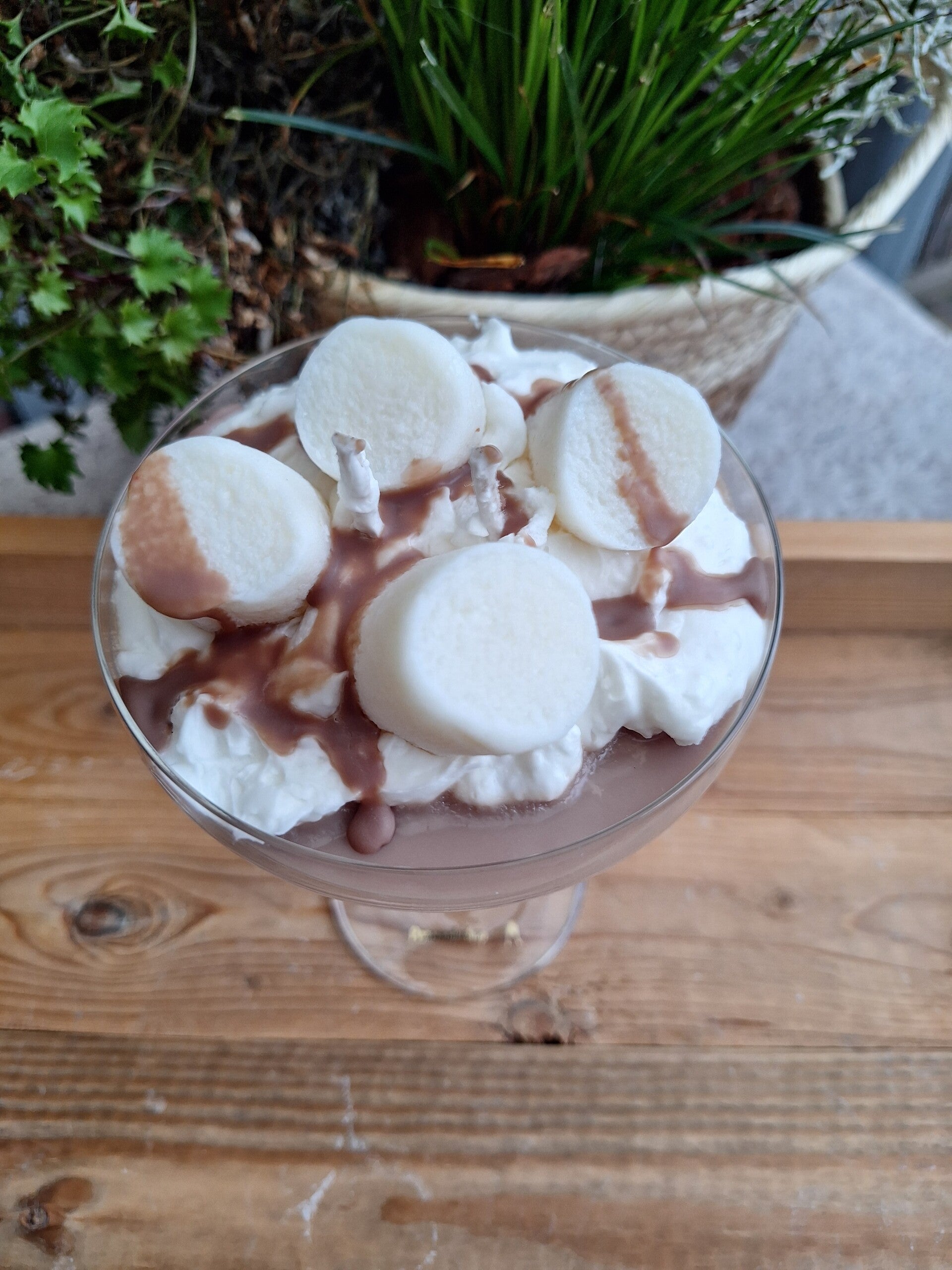 Mooie en heerlijk ruikende marshmallow kaars in een champagneglas. Zit 150 gram aan soja wax in.