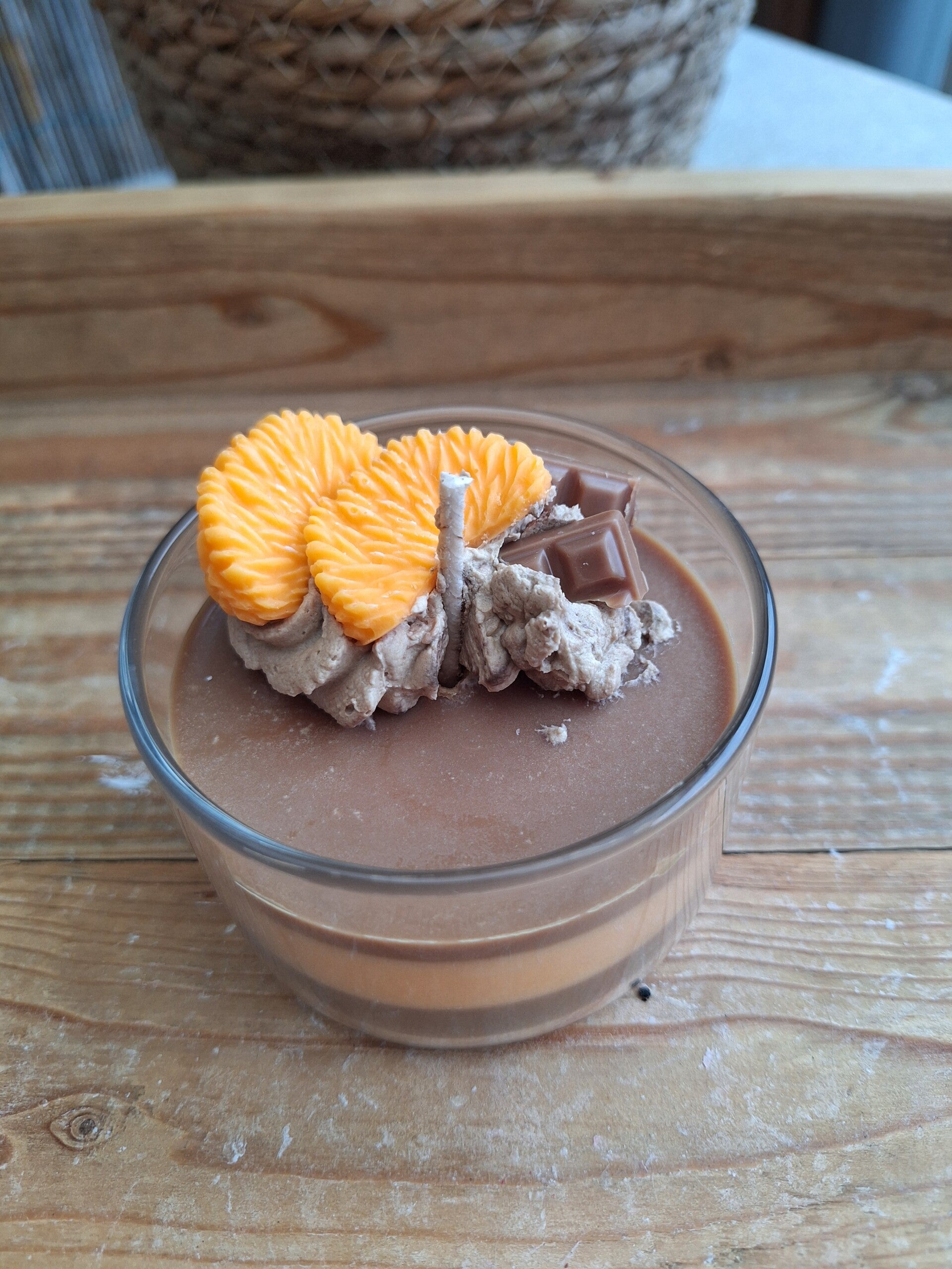 Prachtige Heerlijk ruikende chocolade toetje. ruikt heerlijk naar chocolade. E