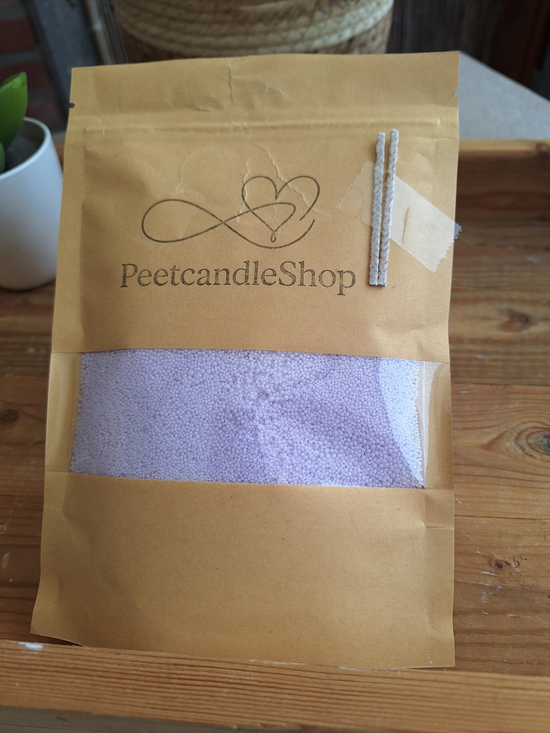 Proefzakje kaarsenzand met 2 lontjes.Ook leuk om als cadeautje weg te geven. Inhoud 150 gram, kleur paars