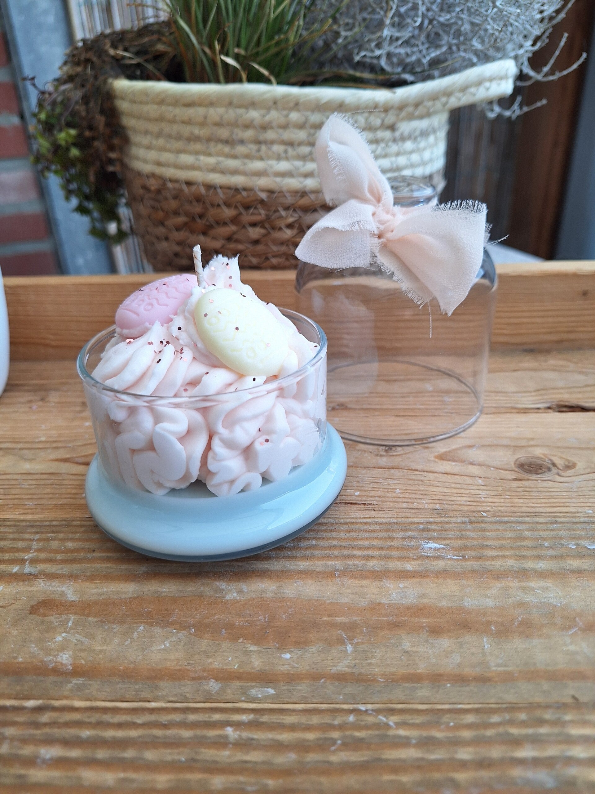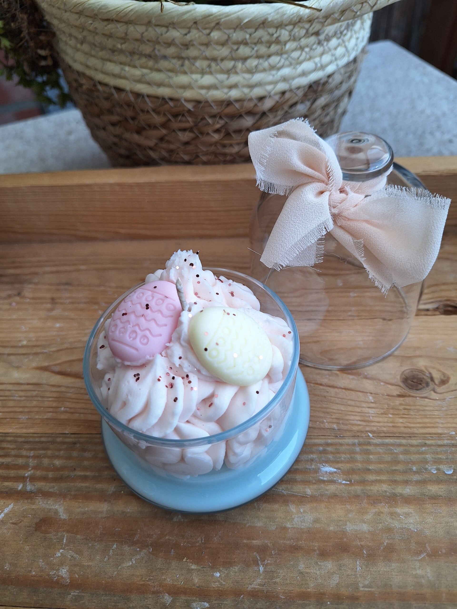 Prachtige paas kaars in een ministolp met mooie pastelkleuren. Gemaakt van sojawas en ruikt heerlijk naar een frisse zomer geurtje.Inhoud 150 gram.